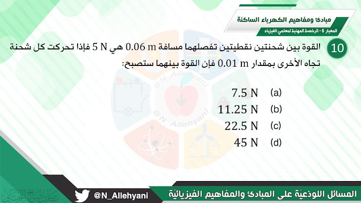 القوة بين شحنتين نقطيتين تفصلهما مسافة 0.06m هي 5N - ملتقى الفيزيائيين العرب