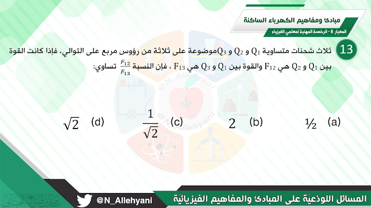 | ثلاث شحنات متساوية q1 ، q2 ،q3 #الفيزيائيين_العرب | ||